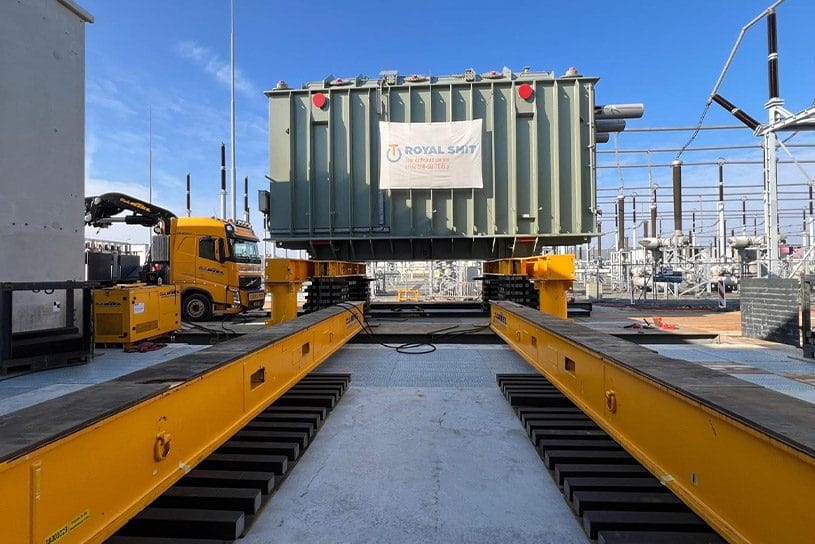 Once there, the transformer was brought into place by jacking and sledging. Thanks to tight planning and good cooperation, this job was again done safely and efficiently!