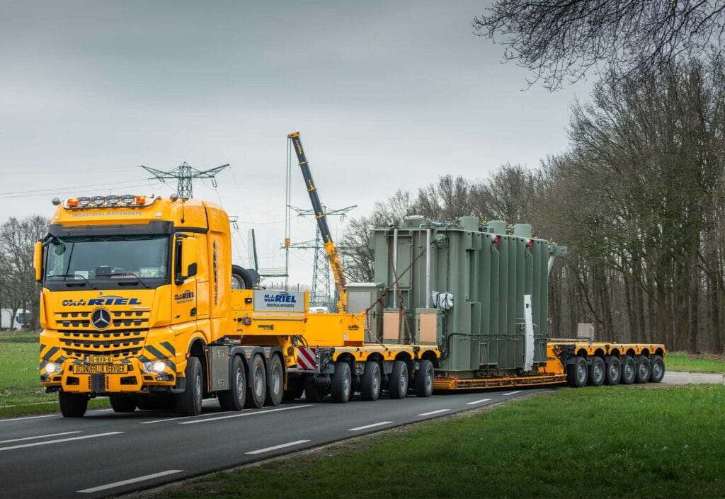 Afgelopen week hebben wij weer een transformator mogen leveren op een onderstation in Veghel. Dit was een van de eerste ritten voor de nieuwe Mercedes Arocs 8 x 4 met zijn Faymonville CombiMAX 4 bed 6 (transformator bed van 20 cm dik)
