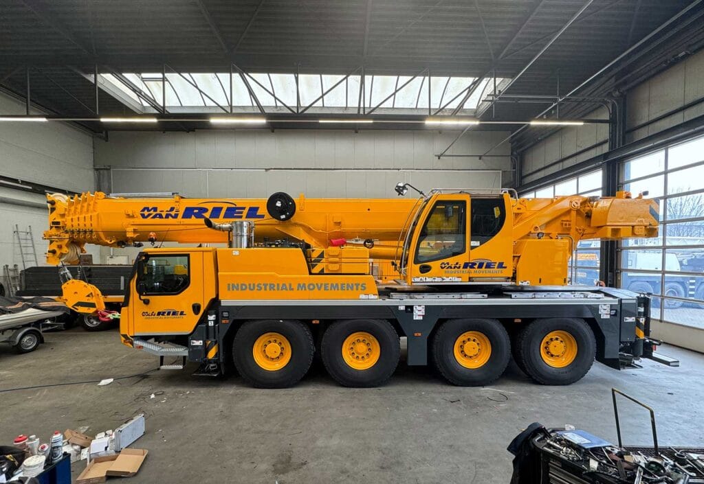 De 1e van de 2 nieuw aangekochte Liebherr LTM 1070-4.2 is binnen gekomen. Vorige week is deze kraan bestickerd en de kraan staat nu bijna klaar om aan het werk te gaan.