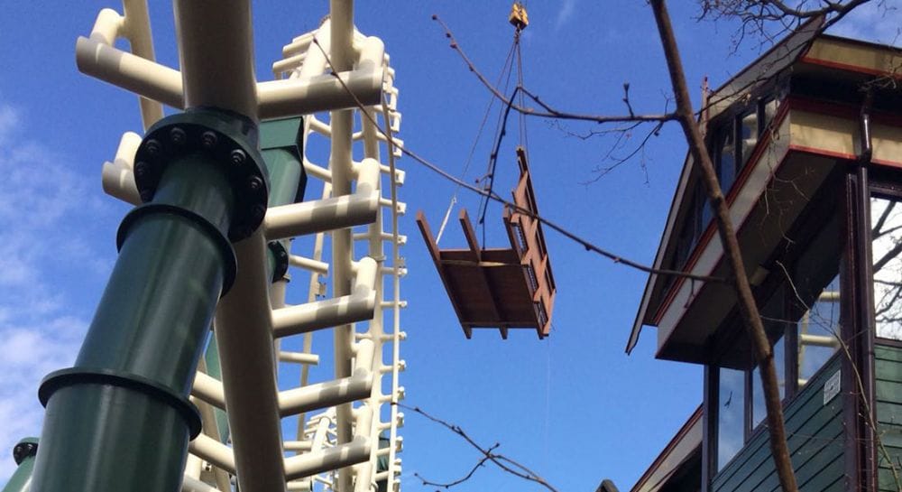 44-meter mobiele torenkraan hijst voetgangersbrug bij Python in Efteling