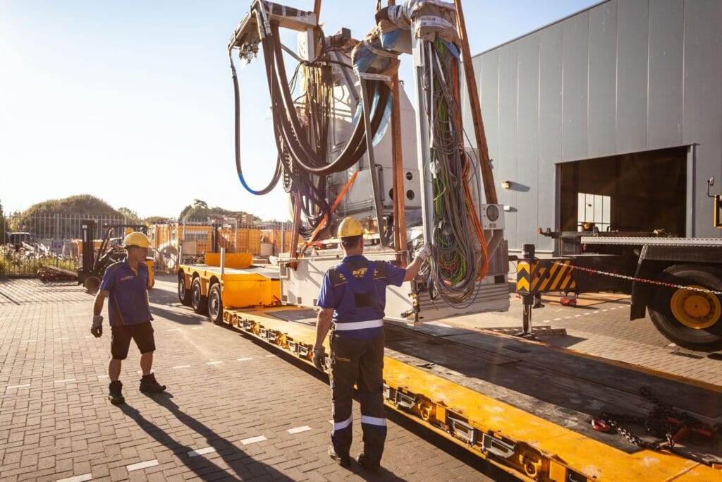 Op de eerste dag van het werk hebben we ’s ochtends in alle vroegte de machines met van onze telescoopkranen op het transport geladen. Daarna kon het speciaaltransport van start gaan, waarbij we onze zwaartransporttrekker met eurodieplader hebben ingezet. Eenmaal aangekomen op de tweede locatie heeft de telescoopkraan de machines weer gelost, zodat onze machineploeg ze naar binnen konden brengen met behulp van interne transportmiddelen. Dit alles kon binnen een dag voltooid worden.